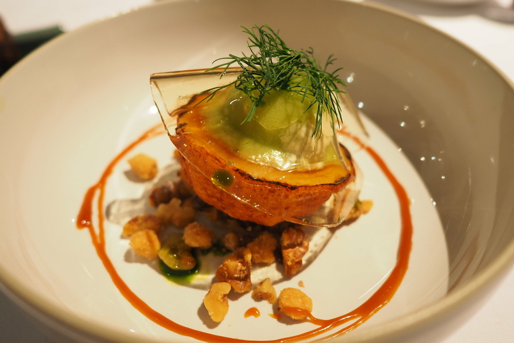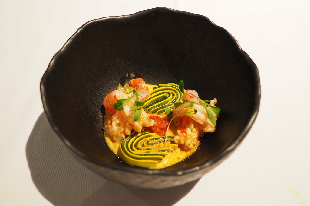 胭脂蝦大約七分熟,超級鮮甜Q彈好吃!!櫛瓜脆脆的口感也很優,整體非常喜歡~~