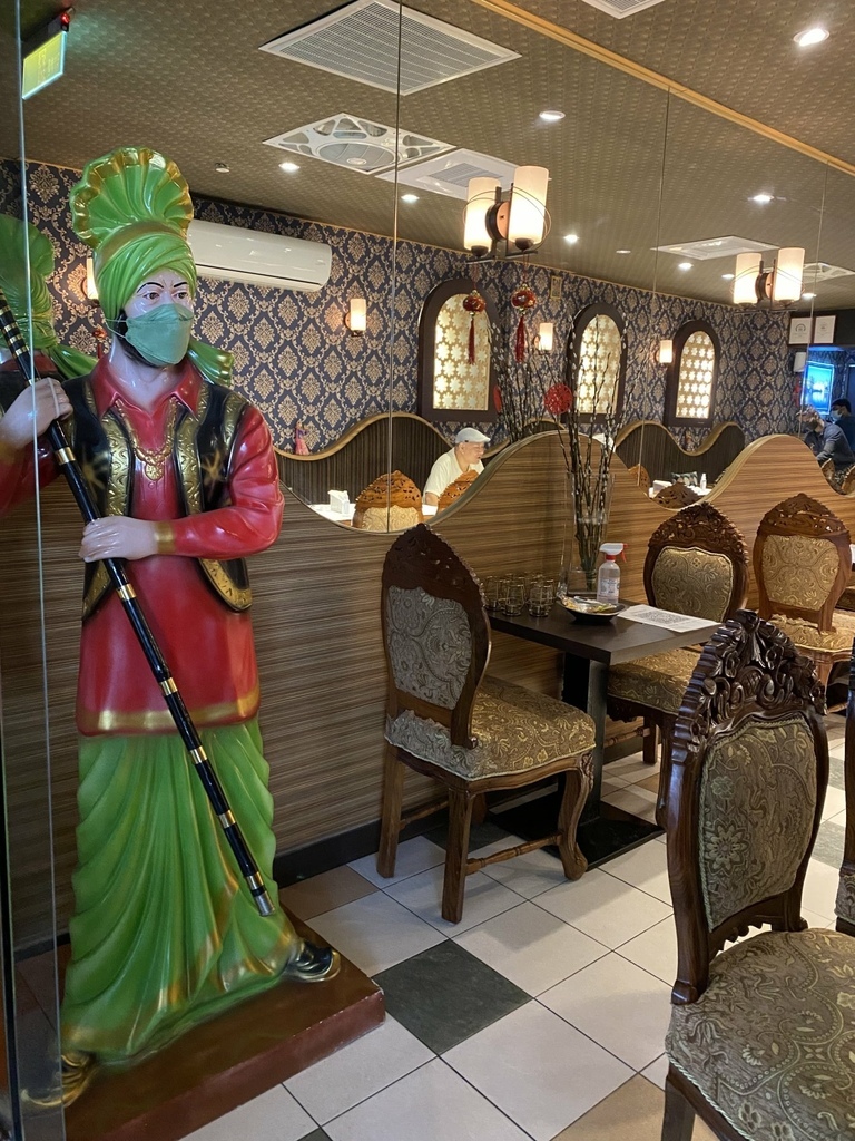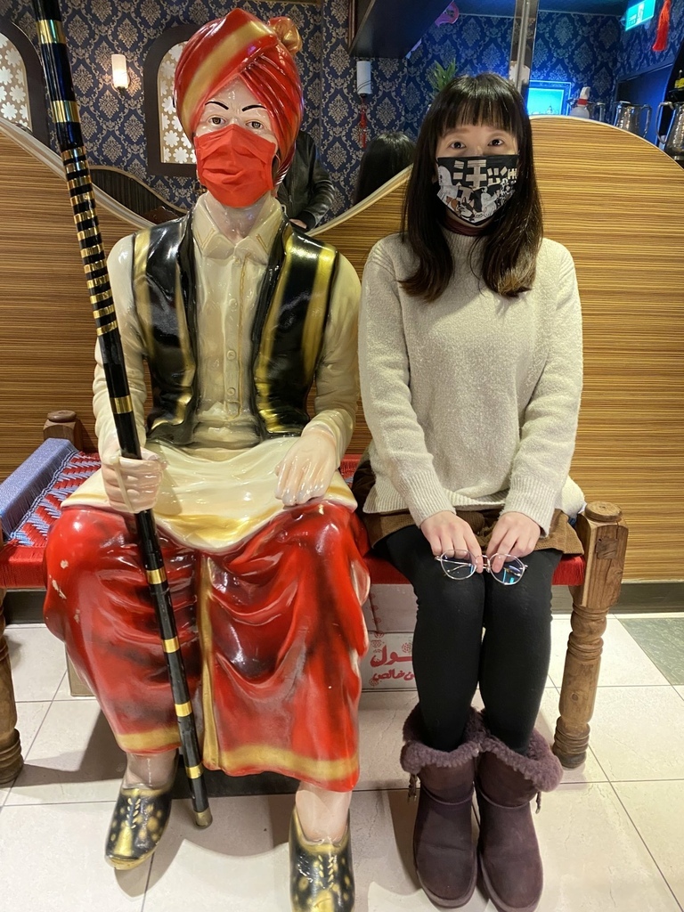 餐廳裡與真人一般大小的包頭巾印度人像是一大特色,在Covid-19肆虐的時代下也都紛紛戴起口罩來一同防疫XD
